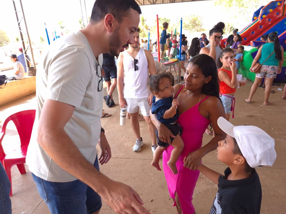 Acompanhado da primeira-dama Thaís Toledo e do filho Daniel, o prefeito fez questão de estar junto das famílias, brincar com as crianças e compartilhar momentos de alegria com os pequenos.