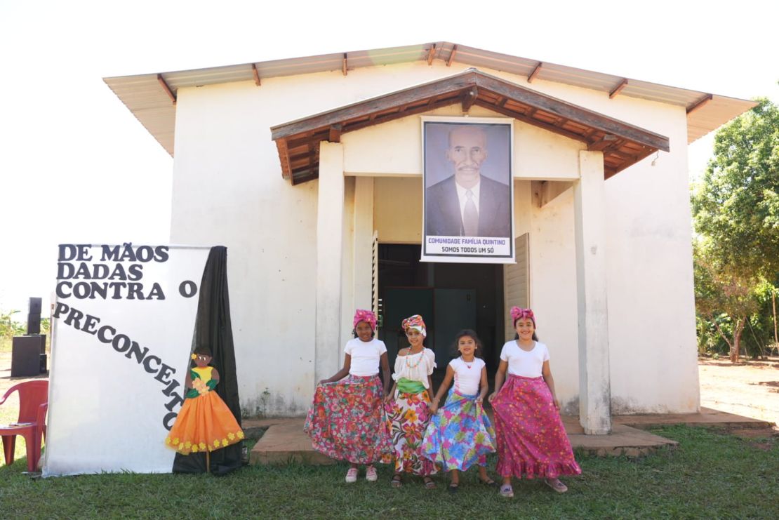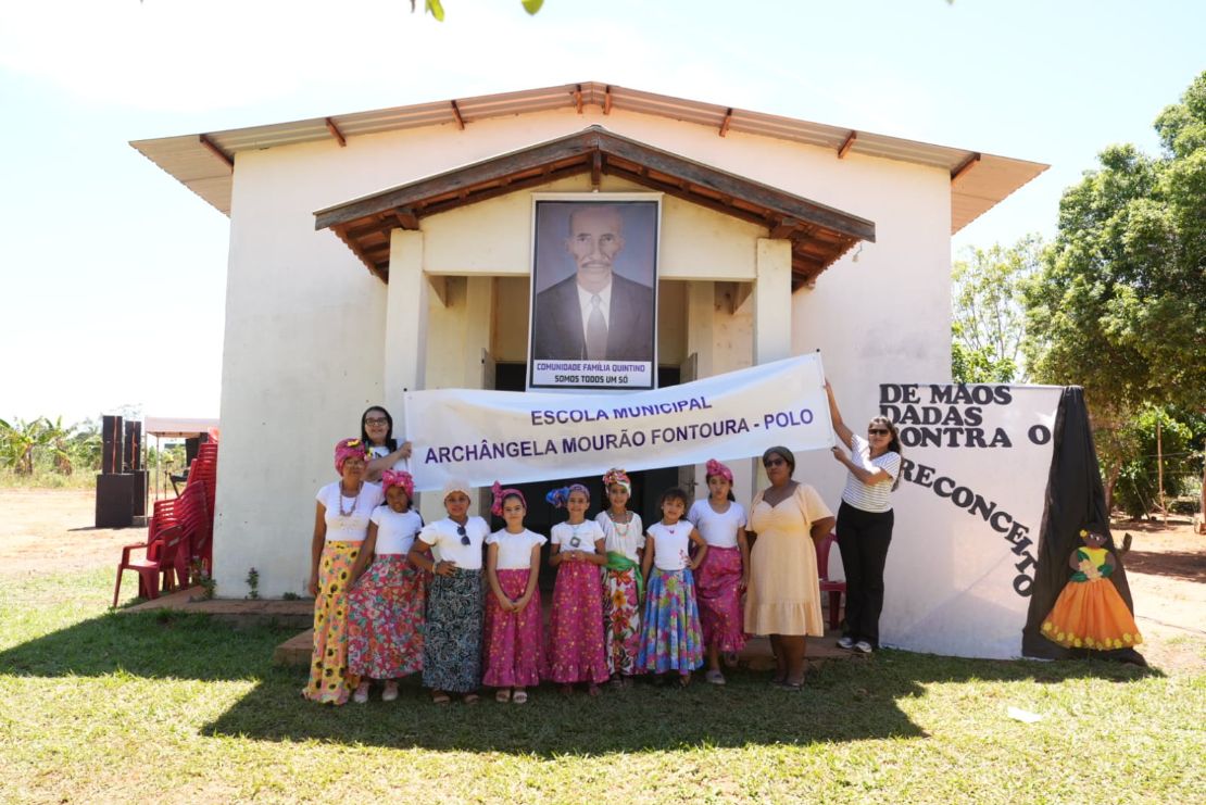 A Escola Arcângela emocionou o público com uma apresentação especial em homenagem à cultura quilombola, enquanto a Banda Municipal de Percussão levou ritmo e animação ao encontro. A presidente da comunidade, Marisete, celebrou o momento e destacou a união que marca a história e a luta da Família Quintino.