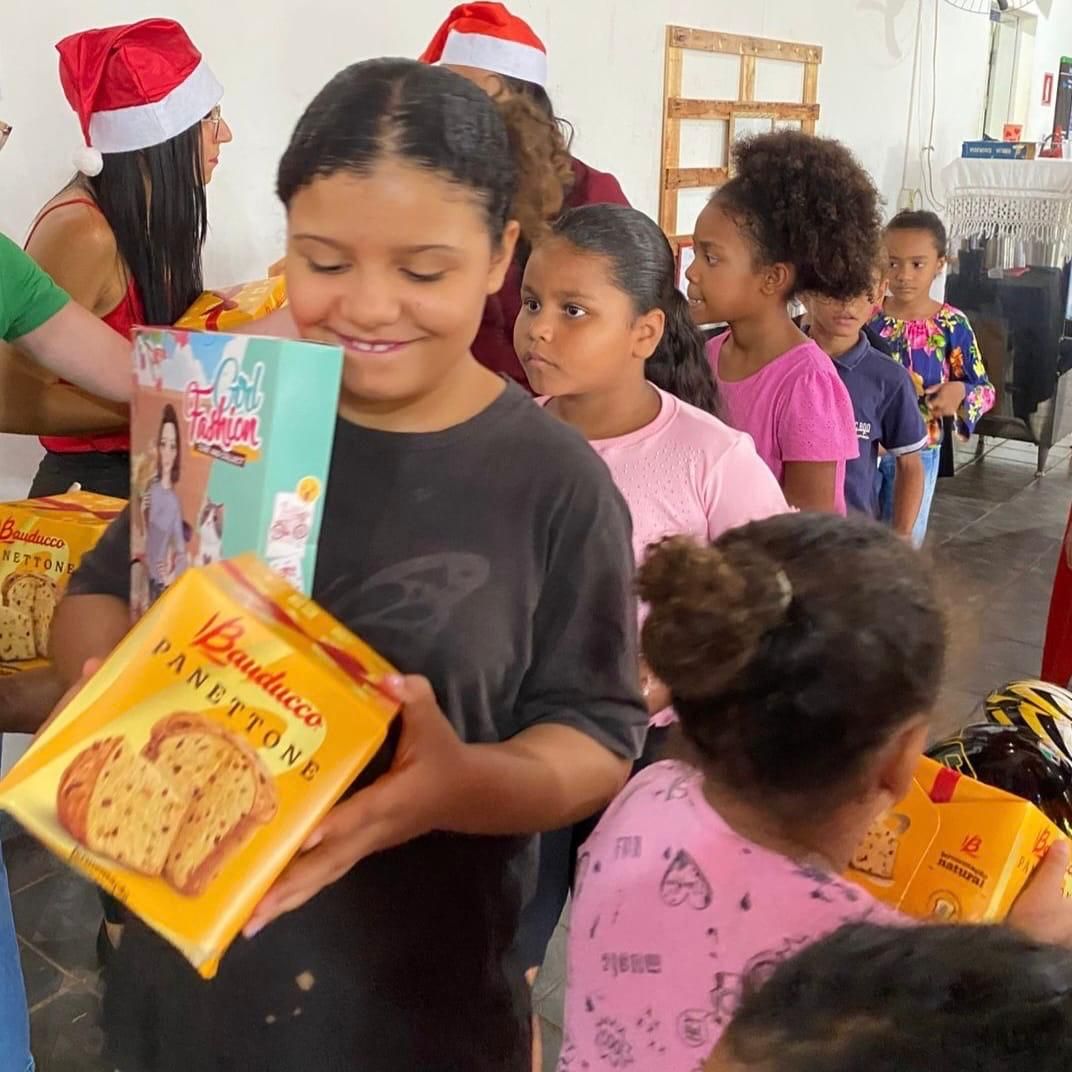 Também receberam os panetones famílias e gestantes acompanhadas pelo programa Criança Feliz, famílias atendidas pelo PAEF, por meio do CREAS, algumas famílias acompanhadas pelo PAIF, bem como instituições como o Asilo/Lar dos Idosos e a Casa de Acolhimento.